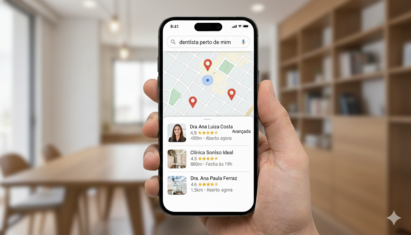 Com estratégias de SEO Local e um Perfil da Empresa no Google bem otimizado, seu negócio passa a aparecer para quem já está procurando na sua cidade ou região.